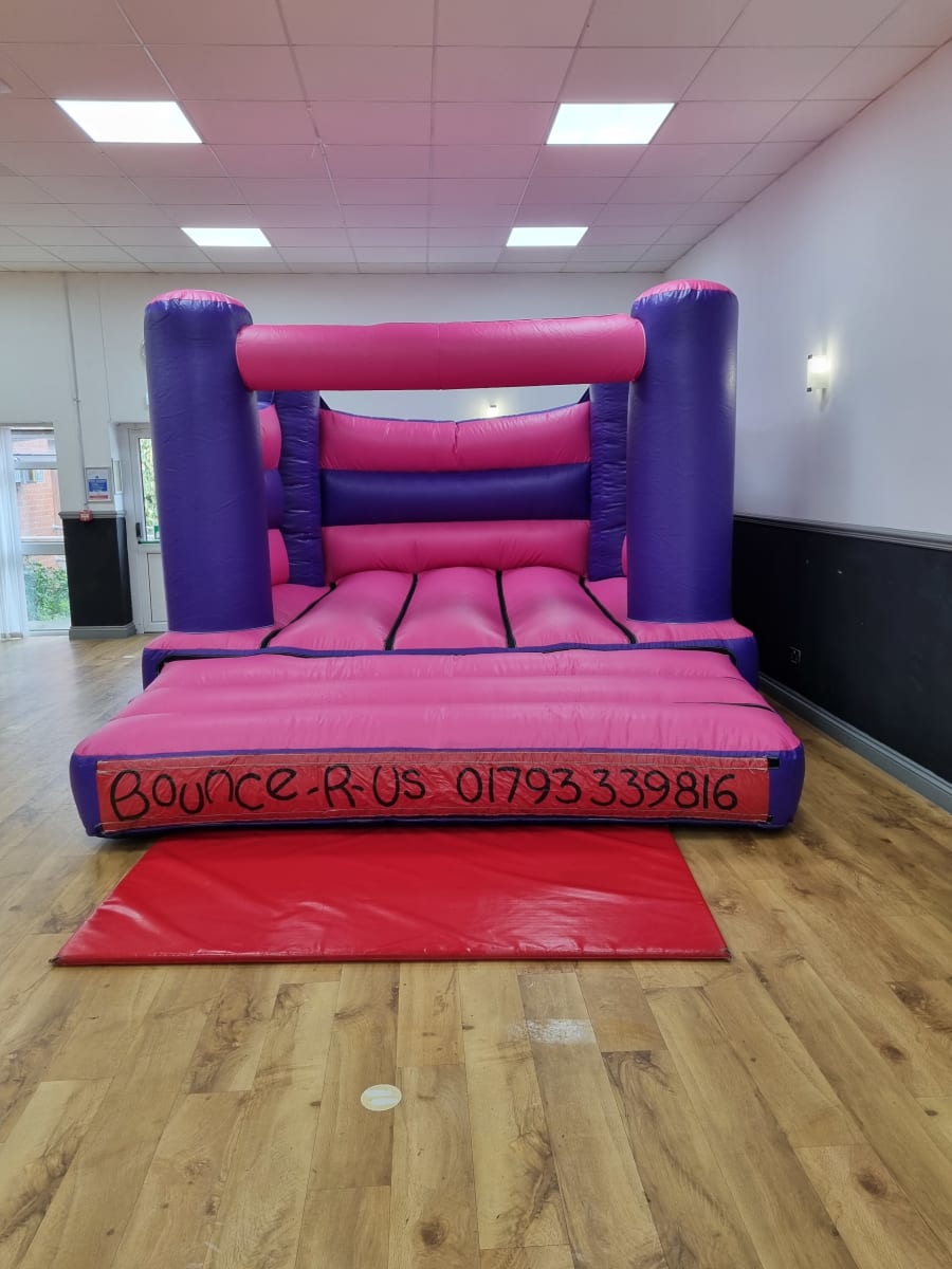 Pink - Purple low height bouncy castle that is perfect for low ceilings in halls.
