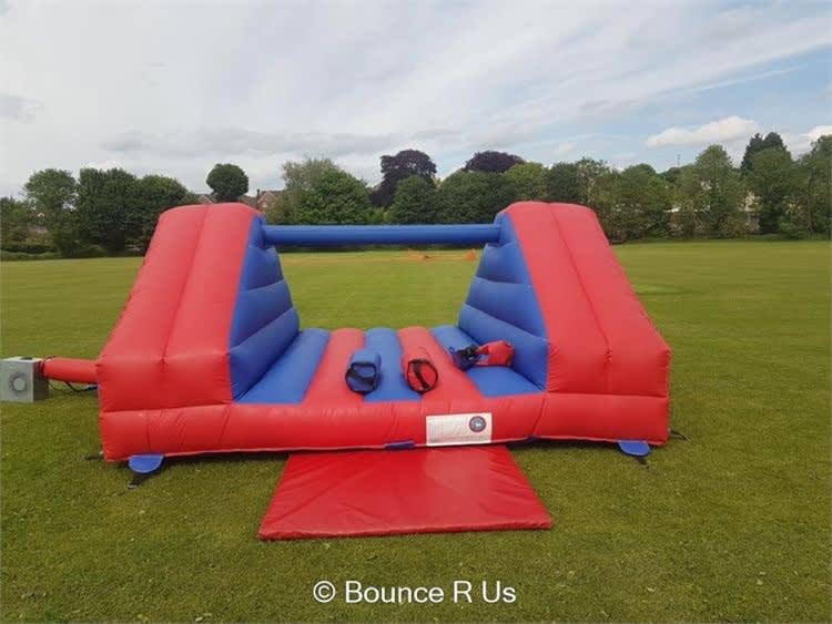 Pillow Bash is now available at Bounce-R-Us for hire at your Party, Wedding, Fun Day, Corporate Event or even Church Fete, Stag Do and Hen Do. This is also known as Pole Joust. This entertainment will be at the front of the queue for many guests. Two people sit up on the pole ready to take battle with their foam filled pillows to see who can stay up the longest to see who the winner will be.