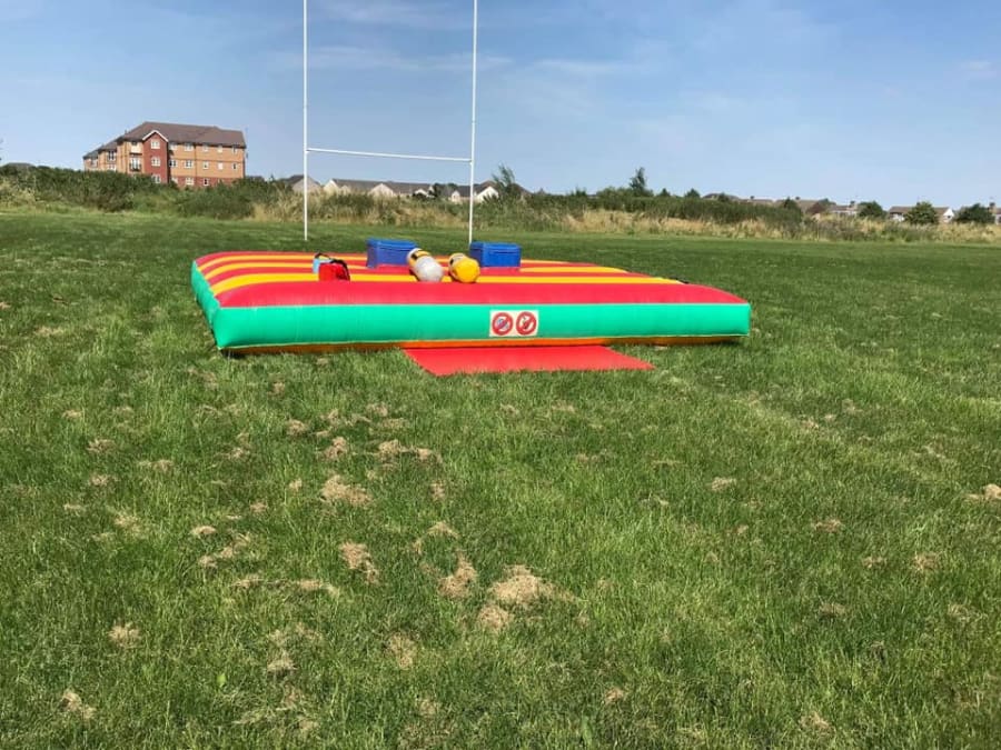Once the inflatable is set up, all there is left to get is your guests, friends or even work colleagues. Get 2 players to stand on the podiums, grab your pugal sticks and bash the other player off.