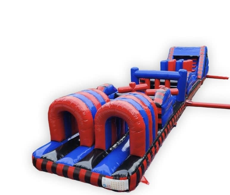 Here we have a 10ft Platform colourful Slide and a 60ft colourful Assault Course as a Party Package.
