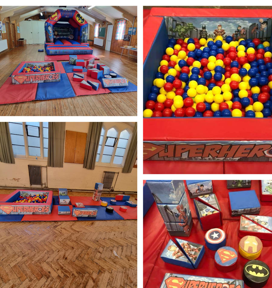 Here You Have a Superhero Package of Bouncy Castle, soft play and a ball pool. All Themed in Lovely Blue /Red. This is a Perfect Package for Your Very Own Superhero
