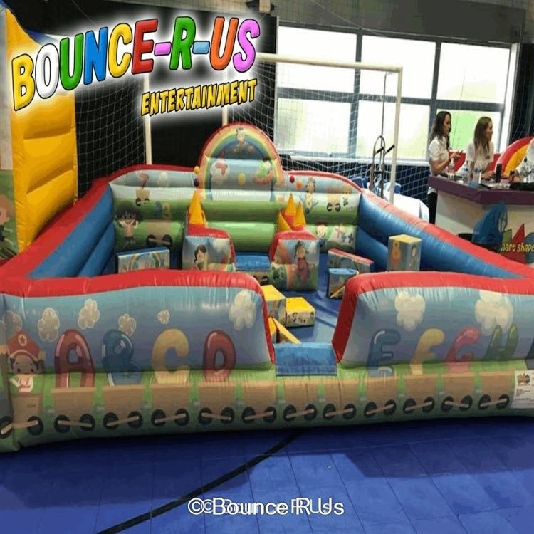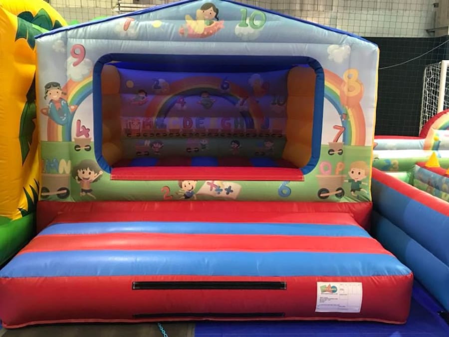 shapes all contained in an inflatable surround and the bouncy castle. This is all Fully Printed in ABC design. This all comes delivered and set up by our safety conscious staff. All safety tested Pipa Tagged All Fully Insured
