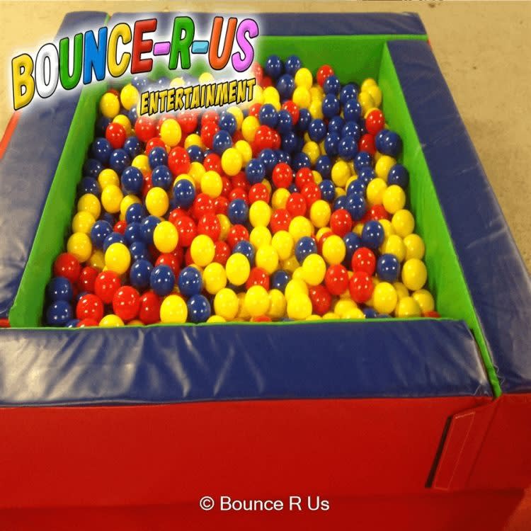 is 6ft x 6ft. It is supplied with multi coloured plastic balls which are specially made to ensure that they are not crushed and don't dimple. Made of solid squishy foam so it's sturdy, yet very safe! It comes with soft mats inside the